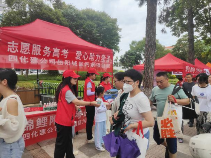 為更好地服務廣大高考考生及家長,項目部志愿者們專門在岳陽市第十四中學高考考點附近搭建遮陽棚,設置愛心服務點,為考生提供礦泉水、防蚊避暑用品和基礎醫藥器材等助考物品,并自發組建黨員先鋒車隊、工人先鋒車隊、青年先鋒車隊、現場服務隊協助進行愛心送考、文明交通勸導等志愿服務。