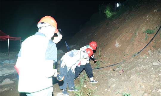 7月2日晚8點48分,巡檢人員、項目執行經理喻希陽在韓家灣干堤6+386K處發現2處管涌險情,項目部迅速上報公司、分公司和樓區等相關單位,第一時間開展搶險工作。大家分工合作,將備好的砂石裝袋、搬運、碼放,采用反濾圍井的方式處險。經過4小時的奮戰,險情得到控制,管涌點滲出清水。