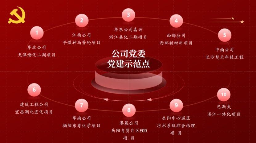 公司黨委全面履行主體責任,高度重視、精心組織,深入研究討論,確定在岳陽污水治理和湛江一體化2個項目創(chuàng)建集團公司黨委黨建示范點。結合公司實際,在華南公司揭陽東粵化學、華北公司天津渤化二期等8個重點工程項目打造公司黨建示范點,實現(xiàn)各領域項目黨建示范點建設全覆蓋,著力增強公司黨委基層黨組織的組織力、凝聚力、戰(zhàn)斗力。