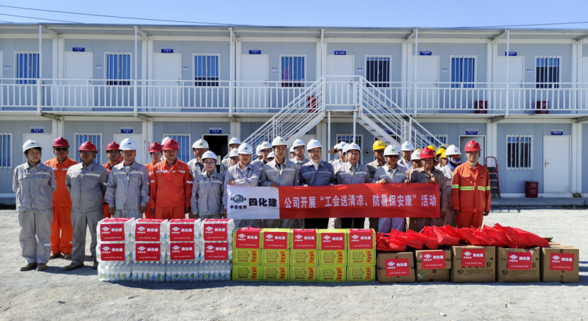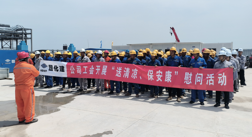 8月2日,受公司工會委托,公司安全生產管理部與華北公司在廣西桐昆項目開展“工會送清涼,防暑保安康”慰問活動,為一線職工送去涼茶、鹽汽水、清涼日用品等防暑降溫禮包。慰問組深入各施工班組,與職工親切交談,詳細了解他們的作息時間和防暑措施,宣傳高溫作業及中暑應急預案等相關知識,叮囑大家在堅守崗位的同時務必注意勞逸結合,確保安全健康作業。