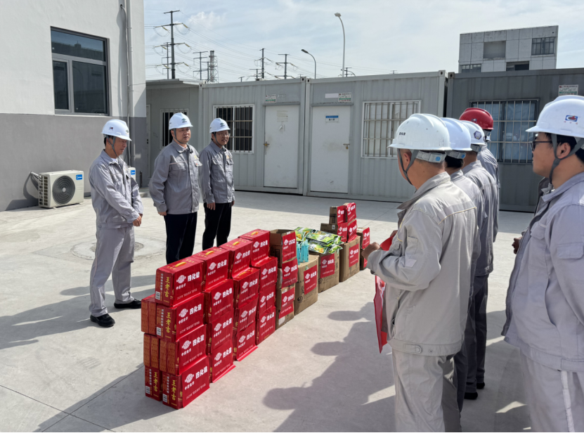 在上海璞烯晶項目部,張勇、胥正旺為奮戰在一線的員工發放防暑降溫物資,并進行帶班檢查和工作指導。張勇強調,當前正值夏季施工關鍵期,項目部要嚴格落實“做兩頭、歇中間”的避高溫措施,配齊防暑藥品,確保作業安全。一線職工要增強自我防護意識,合理調整作息,在高溫作業時時刻關注自身身體狀況,同時要繼續發揚敬業奉獻、攻堅克難精神,在確保安全與健康的前提下,以飽滿的狀態投入施工生產,高質量推進項目建設。