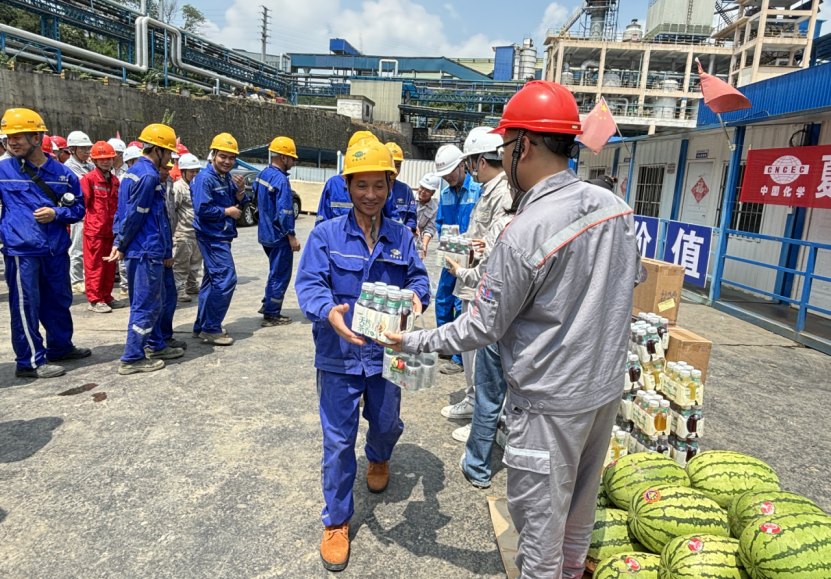 近日,華南公司貴州息烽PPA項目部聯合相關方開展“夏日送清涼,防暑保安康”活動,為一線勞動者發放解暑飲料、涼茶、西瓜等物資。項目負責人叮囑大家重視高溫作業安全,科學安排時間、勞逸結合,錨定“8.31”機械竣工目標全力沖刺,以實際行動彰顯“化建湘軍”的高效履約與專業實力。