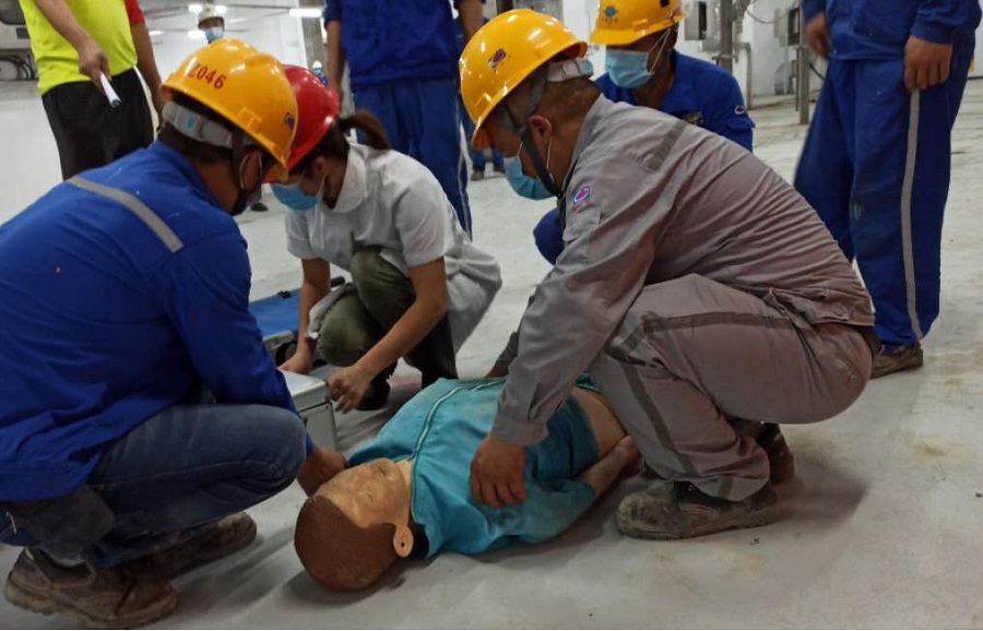 6月8日上午,華南分公司石井凈水廠二期項目與監(jiān)理、總包、業(yè)主代表進行了高空墜落應急救援演練。