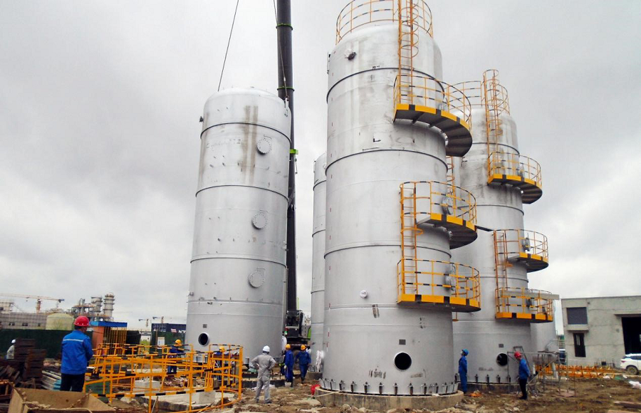 華南分公司連云港石化基地4臺臭氧化塔吊裝就位