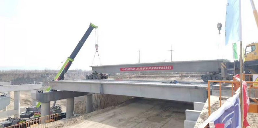 西部分公司榆中生態(tài)創(chuàng)新城夏緯七路項目首榀箱梁架設啟動