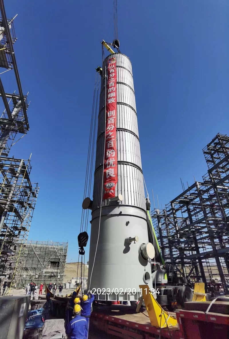 近日,由華東公司承建的大連恒力石化新材料科技有限公司160萬噸/年高性能樹脂及新材料項目1#24萬噸/年雙酚A裝置順利完成結晶器吊裝,標志著項目建設進入安裝大干階段。